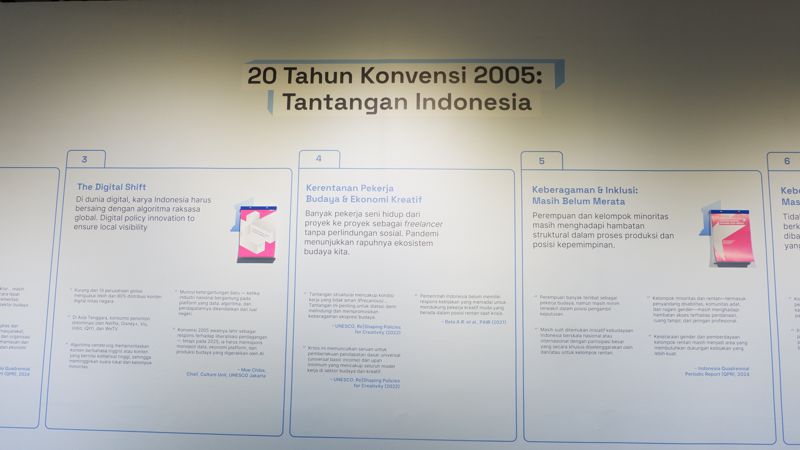 Pameran ini menampilkan perjalanan Indonesia sejak meratifikasi Konvensi 2005 UNESCO pada tahun 2012, lengkap dengan tujuan, capaian, tantangan, serta dampak kebijakan implementasinya. Narasi tersebut dihidupkan melalui karya empat seniman dan kolektif yang merefleksikan relasi antara negara, masyarakat, teknologi, dan kebebasan berekspresi.