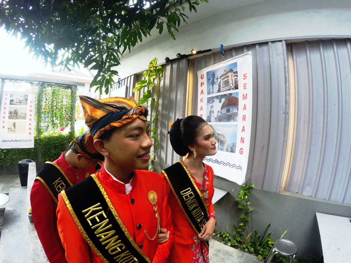 Salah satu highlight dari pembukaan acara adalah hadirnya Kenang Kota Semarang dan Dewok Kota Semarang—pasangan duta budaya berpakaian adat Semarangan yang mencuri perhatian. Mereka tampil penuh percaya diri, dengan outfit merah menyala dan blangkon khas pesisir utara, menjadi magnet kamera bagi para pengunjung. Beberapa pengunjung bahkan langsung mengabadikan momen itu ke Instagram dan TikTok, menyematkan tagar seperti #Upakarya2025 dan #NostalgiaSemarang.